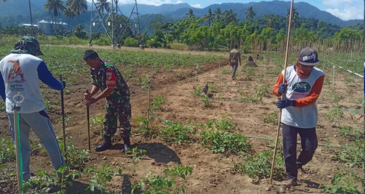 Tak Hanya Menjaga, Babinsa Juga Menanam Harapan di Kebun Tomat