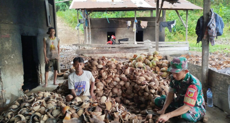 Babinsa Bantu Petani Olah Kopra, Wujud Nyata Kepedulian di Desa Popodu