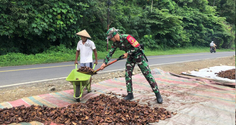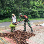 Semangat Kebersamaan, Babinsa dan Warga Kotabunan Selatan Gotong Royong Jemur Kopra