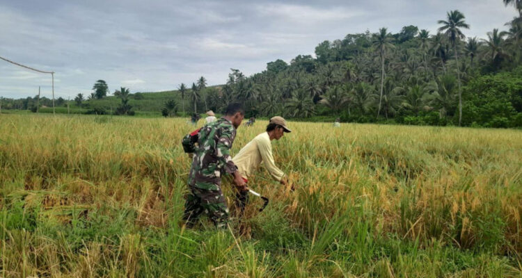 Sentuhan Humanis Babinsa, Bantu Petani Jemur Padi di Desa Tungoi Satu
