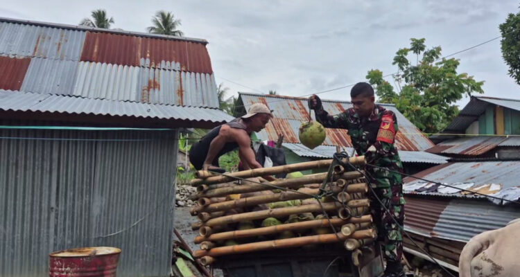 Bersama Rakyat di Desa Binaan, Babinsa Lolak Bantu Jemur Kopra Milik Warga
