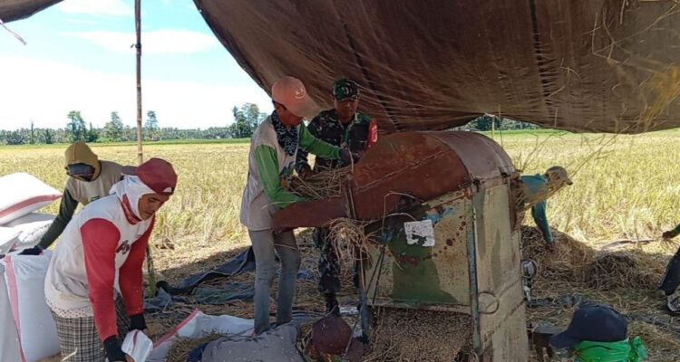 Babinsa Bantu Petani Desa Baturapa Dua Rontokkan Padi, Perkuat Ketahanan Pangan Desa