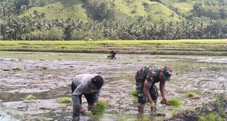 Pagi Penuh Kepedulian, Babinsa Bigo Selatan Turun Langsung Bantu Petani Jemur Padi