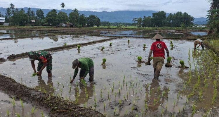 Berlumpur Demi Rakyat, Babinsa Lolayan Bantu Petani Tanam Padi di Tungoi