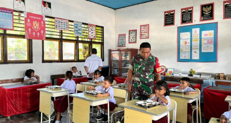 Babinsa Kawal Program Makan Bergizi Gratis bagi 1.100 Siswa di Bolaang Mongondow