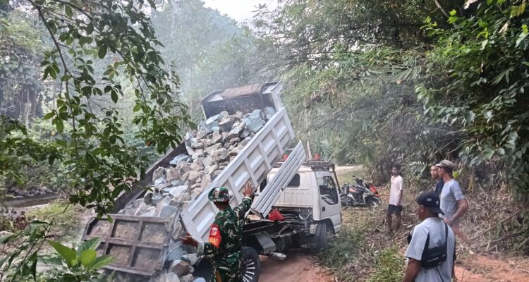 Semangat Gotong Royong, Babinsa dan Warga Mopusi Bersihkan Lokasi Pembangunan Jembatan
