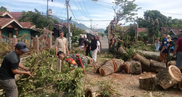 Personel Koramil Kotabunan Laksanakan Kerja Bhakti Pembersihan Pohon Tumbang