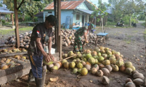 B O L M O N G – Bintara Pembina Desa (Babinsa) Koramil 1303-09/Bolaang Serda Heri Sukandar bersama warga melaksanakan karya bhakti berupa pembersihan pekarangan Masjid Al-Muqalrobi Desa Bantik Kecamatan Bolaang Timur Kabupaten Bolaang Mongondow, Jumat (03/07/2020).