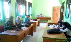 B O L M O N G – Bintara Pembina Desa (Babinsa) dari Koramil 1303-09/Bolaang Sertu Hertomi Kasengke melaksanakan pelatihan Peraturan Baris Berbaris (PBB) kepada siswa Sekolah Dasar (SD) Negeri 2 Komangaan Kecamatan Bolaang Kabupaten Bolaang Mongondow, Kamis (19/12/2019).