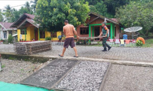 B O L M O N G – Komandan Kodim 1303/Bolaang Mongondow Letkol Inf Raja Gunung Nasution S.IP meninjau langsung lokasi pembangunan renovasi Rumah Tidak Layak Huni (RTLH) di Desa Bakan Kecamatan Lolayan Kabupaten Bolaang Mongondow, Rabu (30/09/2020).