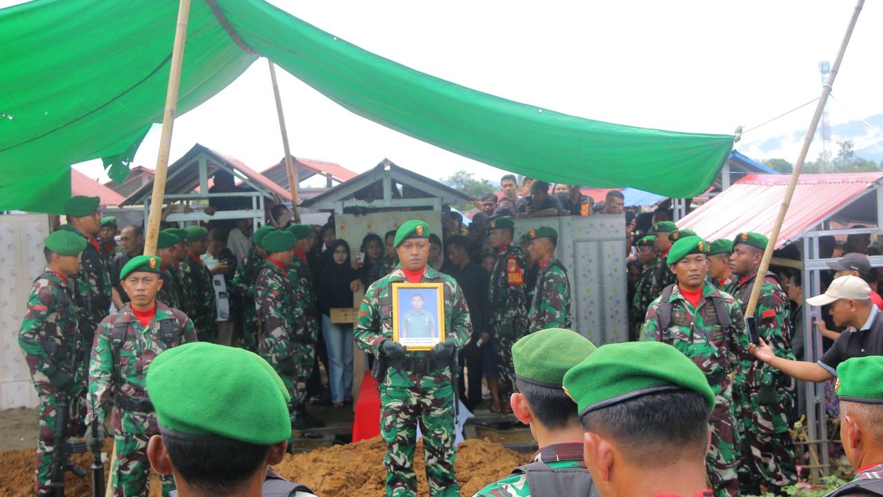 Tangis pecah di antara keluarga dan kerabat saat peti jenazah yang diselimuti bendera Merah Putih diturunkan ke liang lahat. Upacara berlangsung dengan penuh khidmat, diiringi tembakan salvo sebagai penghormatan militer dan doa bersama untuk kepergian sang prajurit muda.