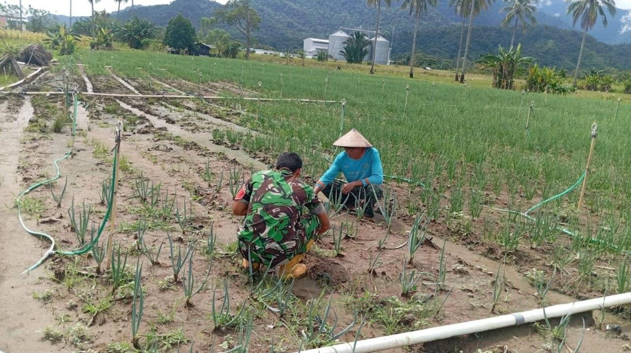 Kegiatan tersebut merupakan bagian dari Pembinaan Ketahanan Wilayah (Bintahwil) yang rutin dilakukan Babinsa di wilayah binaannya. Pada kesempatan itu, Serda Tamrin membantu membersihkan gulma yang mengganggu pertumbuhan tanaman bawang merah milik warga setempat, Jufri Ginoga, di lahan seluas sekitar 0,4 hektare.