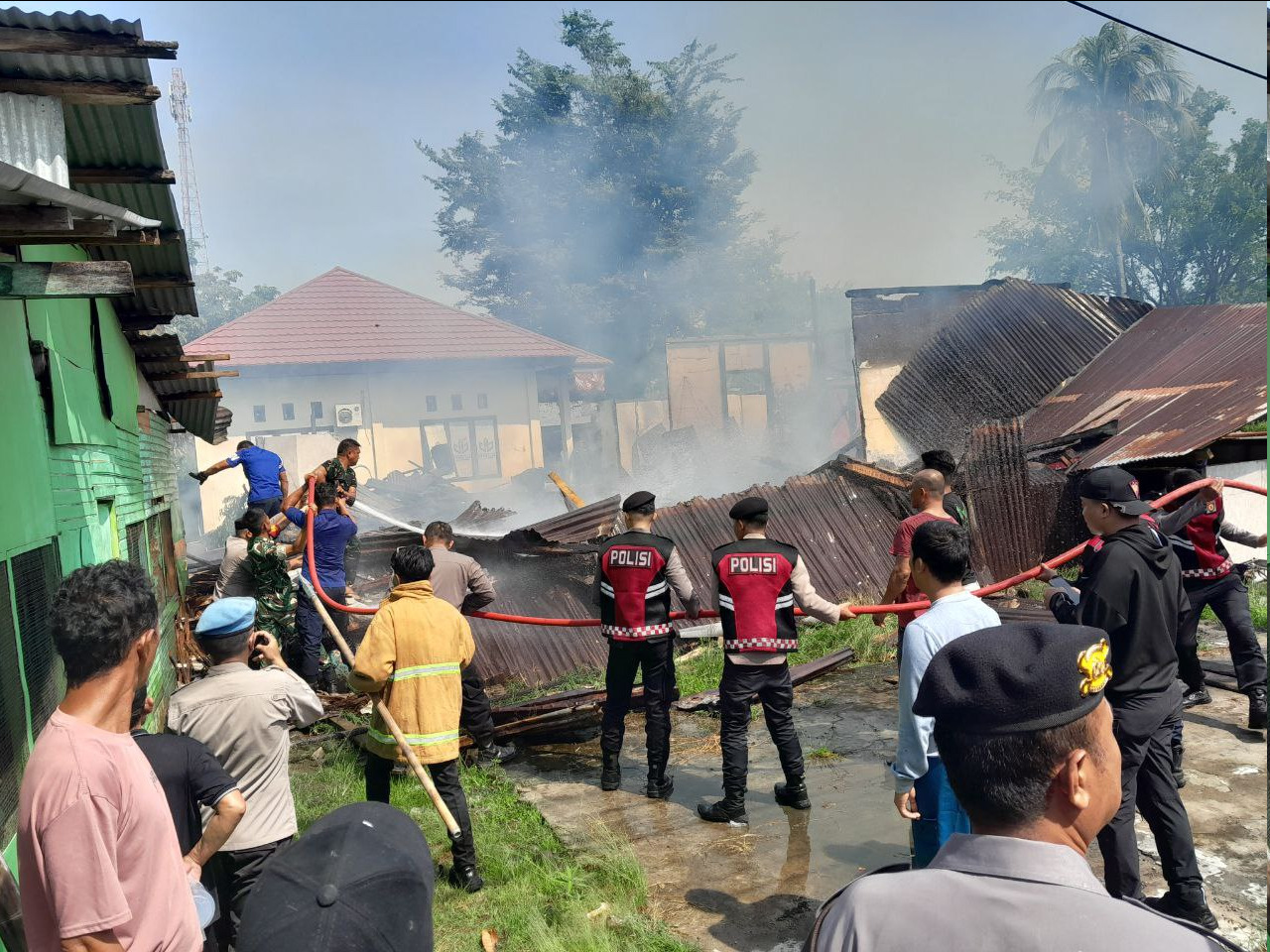 Kebakaran terjadi sekitar pukul 09.28 Wita dan pertama kali diketahui warga setelah muncul asap tebal dari dalam bangunan. Warga bersama aparat setempat segera melakukan upaya pemadaman awal. Dua menit kemudian, satu unit mobil pemadam kebakaran tiba di lokasi dan langsung melakukan pemadaman dibantu Babinsa, masyarakat, serta unsur terkait.