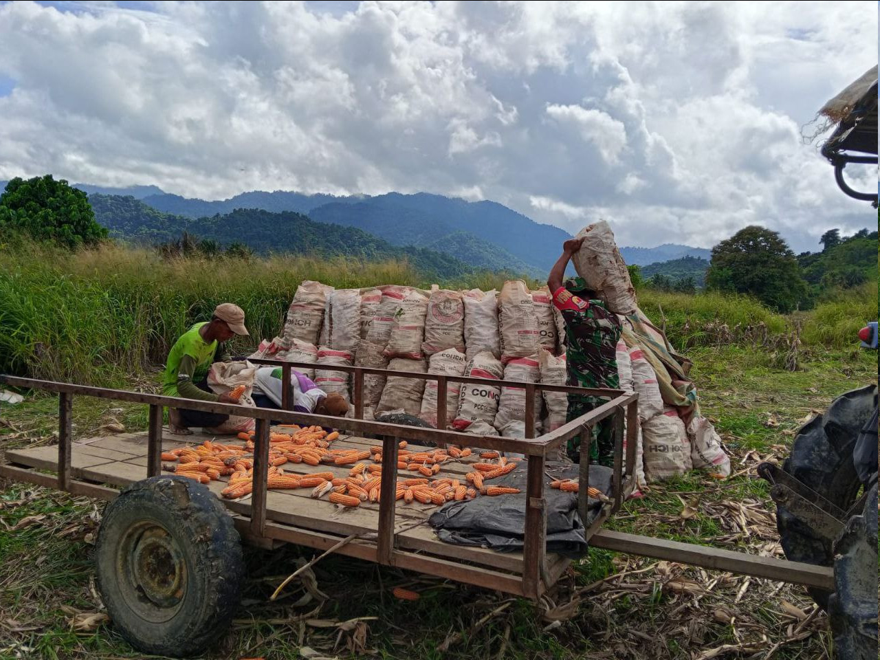 Babinsa Kopka Dwi Purwanto terlihat turun langsung membantu proses pengangkutan jagung hasil panen ke sarana angkut, bersama para petani. Kehadiran Babinsa di tengah masyarakat tidak hanya meringankan beban kerja petani, tetapi juga mempererat hubungan emosional antara TNI dan rakyat.