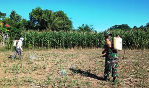 Disela sela waktu usai memupuk tanaman jagung Serda Abdul Rajak mengatakan, Pemupukan tanaman jagung tersebut dalam rangka kegiatan peningkatan Upsus swasembada pangan di wilayah desa binaannya.