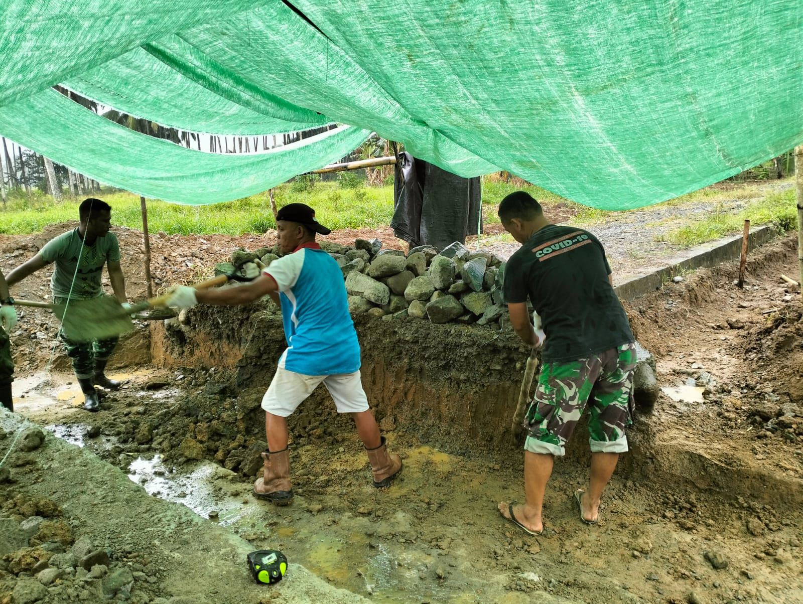Di lokasi-lokasi tersebut, personel TNI bersama masyarakat memulai pekerjaan dengan melakukan pembersihan lahan, persiapan area konstruksi, serta pendistribusian material batu dan pasir.