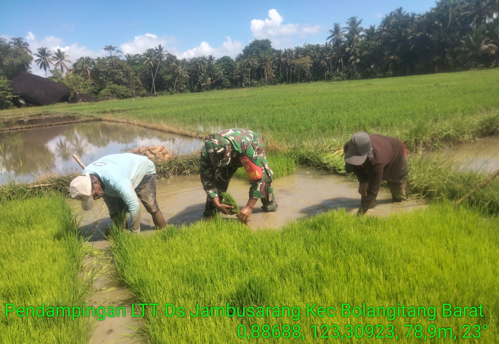 B O L M U T – – Komitmen TNI Angkatan Darat dalam mendukung program ketahanan pangan nasional terus diwujudkan melalui peran aktif Bintara Pembina Desa atau Babinsa. Seperti yang dilakukan Babinsa Koramil 1303-14/Bolangitang, Kodim 1303/Bolaang Mongondow Sertu Khalil Pohontu, yang melaksanakan pendampingan Luas Tambah Tanam (LTT) padi sawah yang bertempat di Desa Jambusarang Kecamatan Bolangitang Barat Kabupaten Bolaang Mongondow Utara, Jumat (08/01/2026).