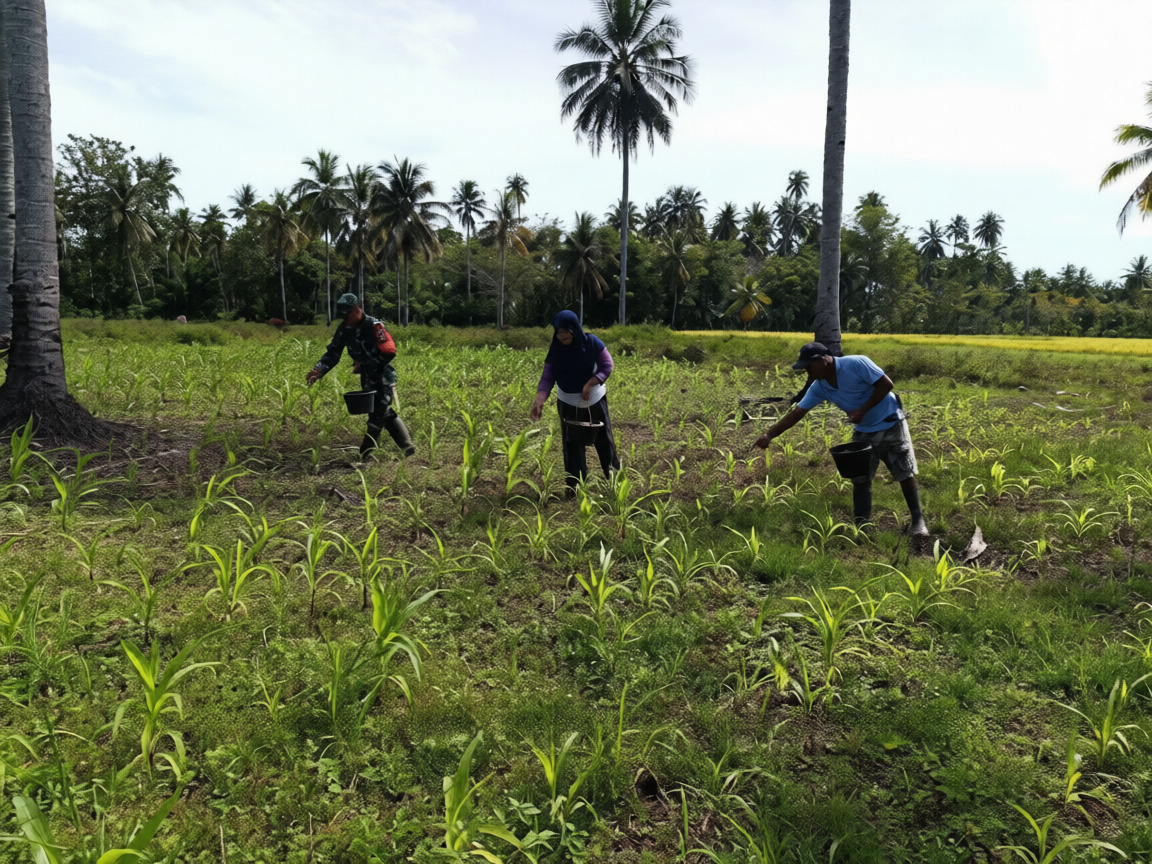 Tanaman jagung jenis NK SUMO yang ditanam di lahan seluas kurang lebih satu hektare itu menjadi salah satu sumber penghidupan bagi keluarga petani di desa tersebut. Dengan penuh semangat kebersamaan, Babinsa turut terlibat langsung dalam proses pemupukan guna memastikan pertumbuhan tanaman dapat berjalan optimal.
