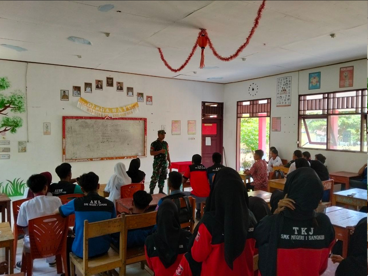 Bertempat di Desa Sangkub Satu Kecamatan Sangkub Kabupaten Bolaang Mongondow Utara, Babinsa Koramil 1303-15/Bintauna Praka Bugma Aziz melaksanakan Kegiatan Pembinaan Ketahanan Wilayah (Bintahwil) di SMKN 1 Sangkub, dengan sasaran pembinaan generasi muda melalui materi Bela Negara dan Cinta Tanah Air, Sabtu (07/02/2026).