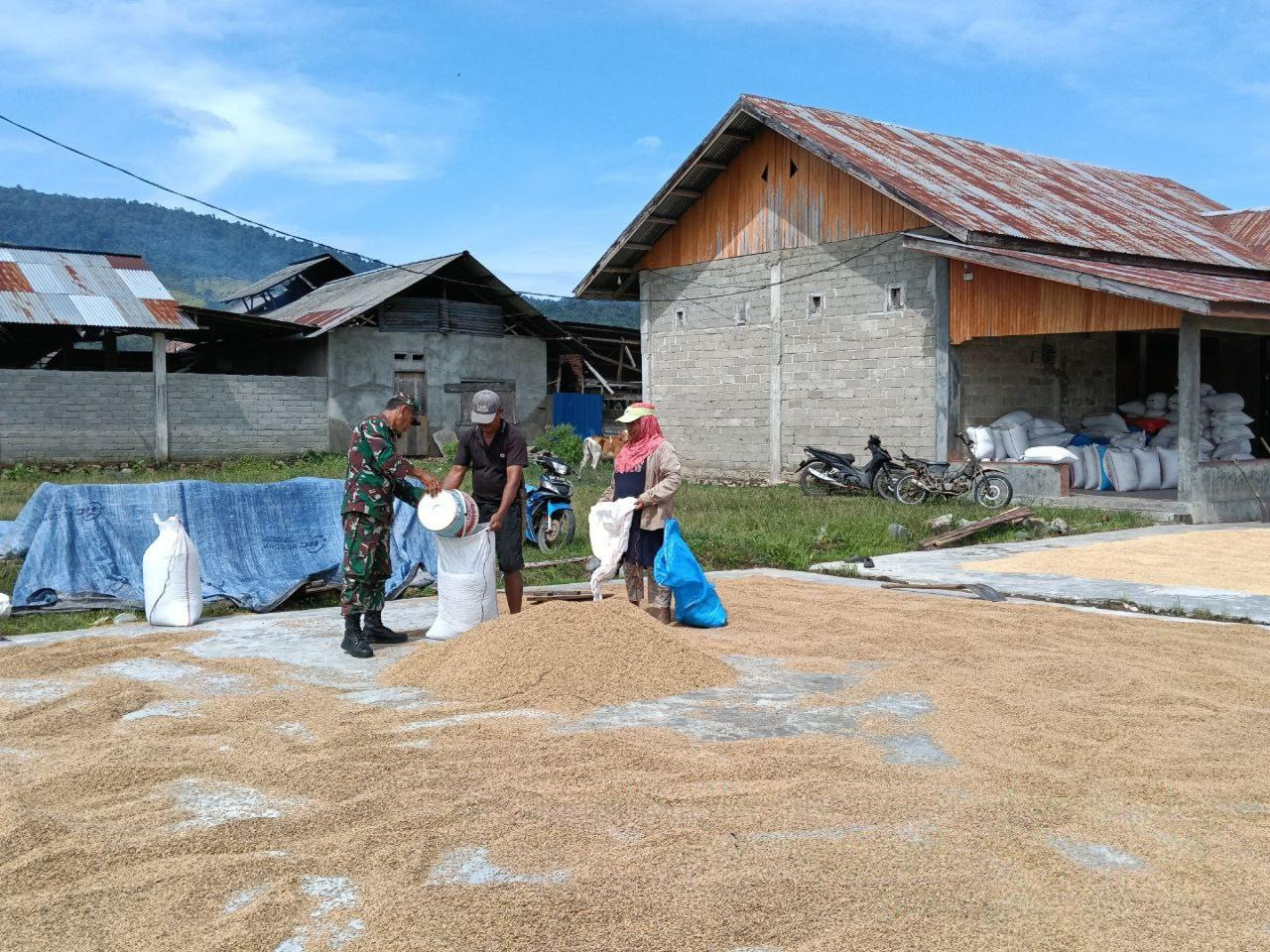 Pagi Penuh Kepedulian, Babinsa Bigo Selatan Turun Langsung Bantu Petani Jemur Padi
