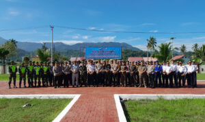 B O L M U T — Komandan SSK Satgas TMMD 113 Kodim 1303/Bolaang Mongondow Kapten Inf Muyassir SIP memimpin apel pagi sekaligus memberikan motivasi kepada seluruh anggota satgas TMMD, Selasa (24/05/2022).
