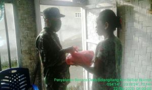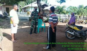 B O L M U T – – Bintara Pembina Desa atau Babinsa Koramil 1303-14/Bolangitang Sertu Abdul Rahman melaksanakan pendampingan petugas BPS dalam melakukan pencocokan data FKP Regsosek (Forum Konsultasi Publik Registrasi Sosial Ekonomi) yang bertempat di Desa Paku Selatan Kecamatan Bolangitang Barat Kabupaten Bolaang Mongondow Utara, Selasa (09/05/2023) kemarin.