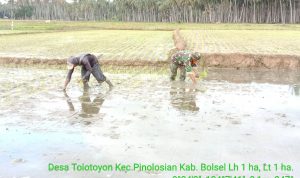B O L S E L — Untuk meningkatkan ketahanan pangan di desa binaan, Babinsa atau Bintara Pembina Desa akan selalu melakukan pendampingan kepada para petani.