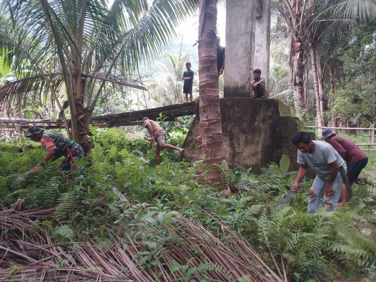 Babinsa dan Warga Desa Matabulu Gotong Royong Bersihkan Jembatan Perintis Garuda