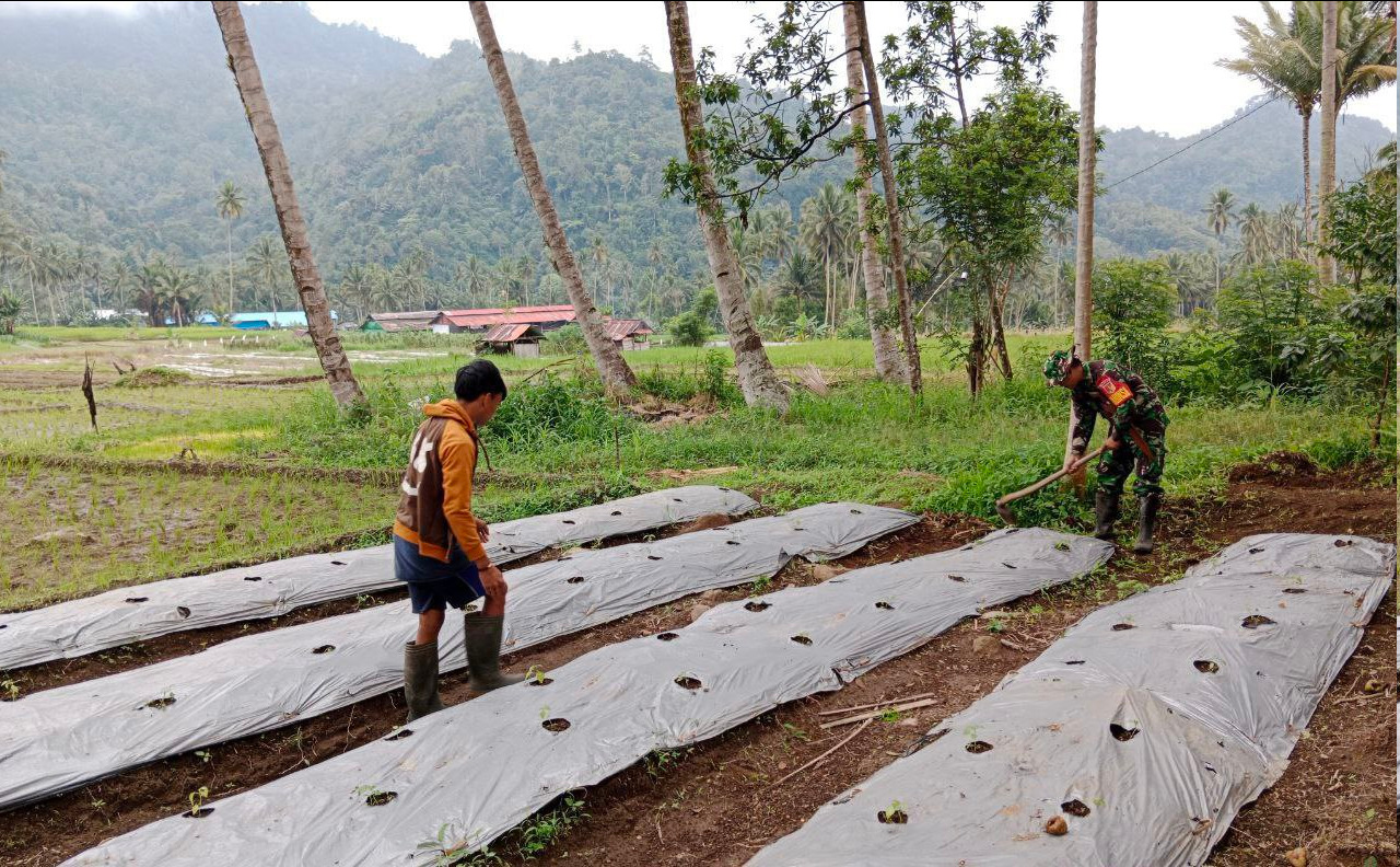 Kegiatan yang dilaksanakan pada pukul 10.10 Wita tersebut menyasar lahan cabai milik Ramlan Mamonto (37) dengan luas kurang lebih 0,5 hektare. Babinsa turut membantu proses penyiapan lahan sebagai bentuk pendampingan kepada petani di wilayah binaan.