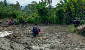 “Untuk mengantisipasi terjadi longsor akibat hujan, saya bersama masyarakat bergotong-royong melaksanakan karya bakti membuat tanggul untuk memperkuat struktur tanah disepanjang jalan Desa agar tidak longsor,” ucapnya.