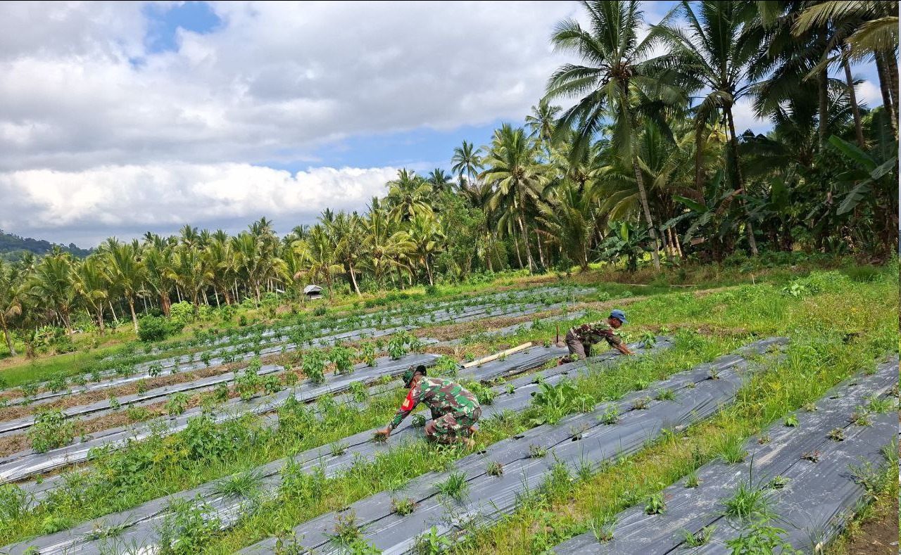 Melalui kegiatan Pembinaan Ketahanan Wilayah (Bintahwil), Kopda Mansur membantu perawatan tanaman cabai milik Bapak Sofyan Mamonto (46), seorang petani di Desa Bongkudai, Kecamatan Modayag Barat, Kabupaten Bolaang Mongondow Timur. Lahan cabai seluas kurang lebih 0,5 hektare tersebut menjadi salah satu sumber penghidupan utama keluarga Bapak Sofyan.