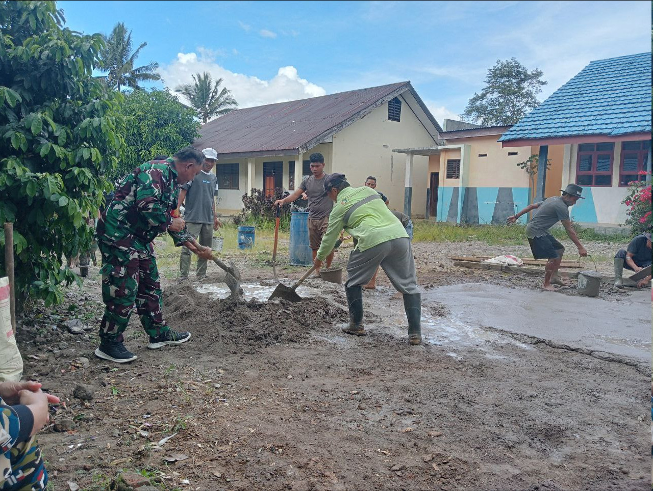 Babinsa Koramil 1303-03/Modayag Serda Wislan Suangi melaksanakan kegiatan bakti bersama masyarakat Dusun 4 RT 2 dengan membantu proses pengecoran lapangan upacara di halaman SMP Negeri Satu Atap Lanut. Kegiatan tersebut disambut antusias oleh warga setempat yang turut ambil bagian, bahu-membahu menyelesaikan pekerjaan demi terciptanya sarana pendidikan yang lebih layak, Seni (02/02/2026).