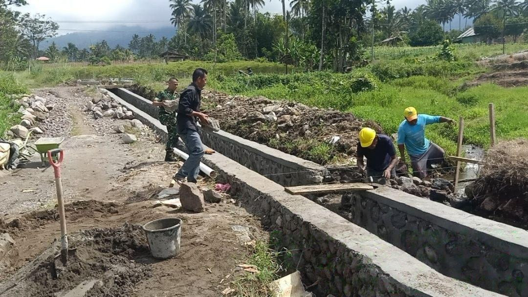 BOLTIM – – Kehadiran aparat teritorial kembali terlihat di tengah masyarakat pasca perayaan Idulfitri. Babinsa Koramil 1303-03/Modayag Sertu Dwiyatmo yang turun langsung membantu warga membangun saluran air di Desa Liberia Timur Kecamatan Modayag Kabupaten Bolaang Mongondow Timur, Selasa (24/03/2026).