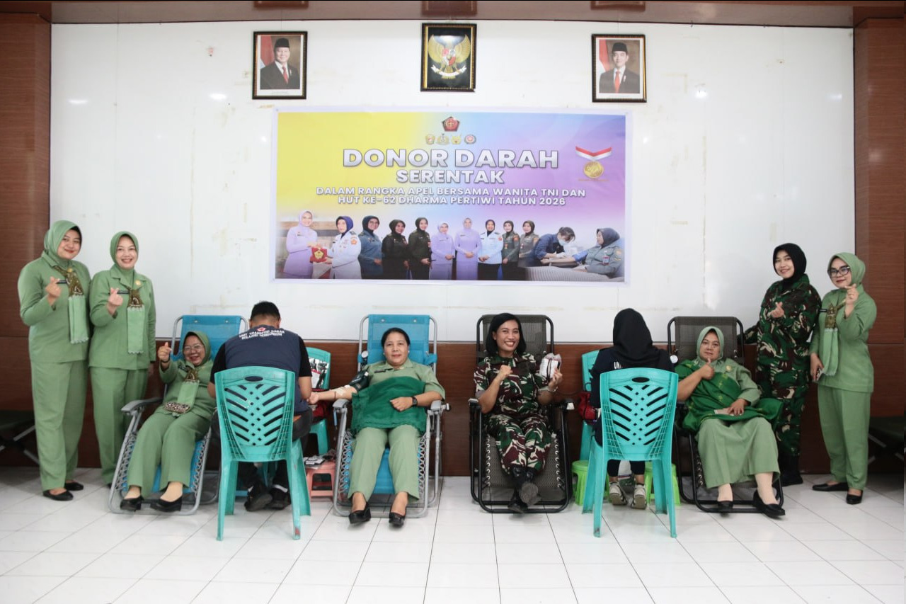 Sejak pukul 08.00 Wita, para anggota Persit mulai memadati lokasi kegiatan. Dengan penuh kesadaran dan semangat kebersamaan, mereka mengikuti rangkaian acara yang diawali dengan video conference Apel Bersama Wanita TNI, sebelum akhirnya bergantian mendonorkan darah, Kamis (02/04/2026).