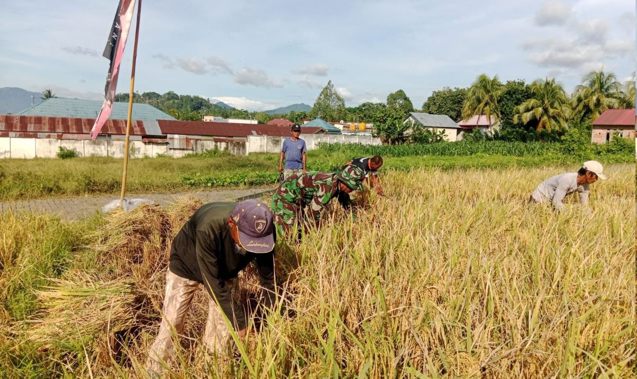 KOTAMOBAGU – – Wujud kepedulian TNI terhadap kesejahteraan masyarakat terus ditunjukkan melalui peran aktif Babinsa di wilayah binaan. Seperti yang dilakukan Babinsa Desa Poyowa Besar Kota Kotamobagu, Sertu Yusran, yang melaksanakan pendampingan panen padi bersama kelompok tani setempat.