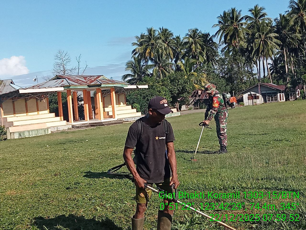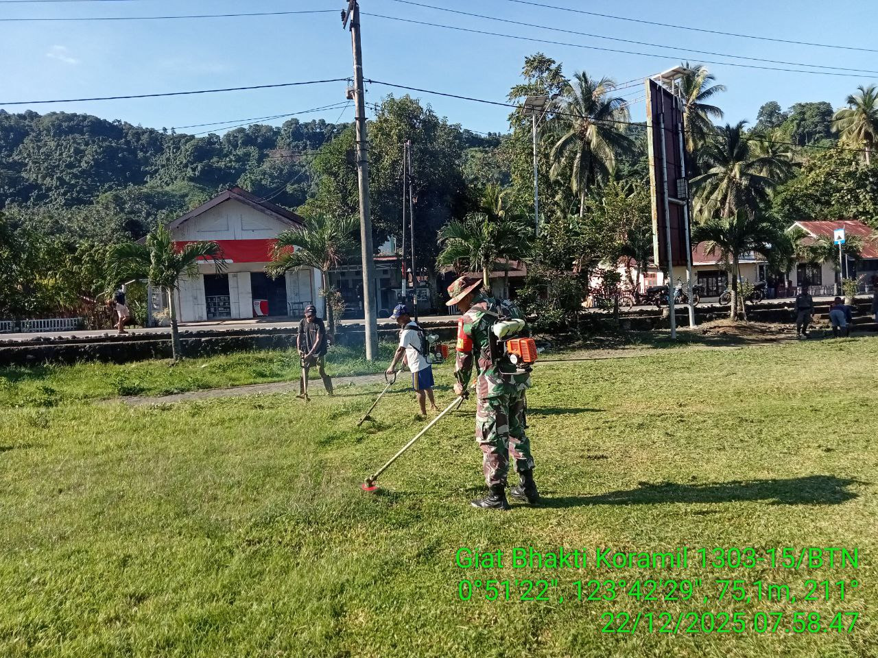 B O L M U T – – Wujud kepedulian TNI terhadap lingkungan dan fasilitas umum terus ditunjukkan melalui aksi nyata di tengah masyarakat. Seperti yang dilakukan Babinsa Koramil 1303-15/Bintauna, Sertu Misran Makalalag, yang melaksanakan kegiatan bhakti pembersihan lapangan sepak bola yang berada di Desa Sangtombolang Kecamatan Sangkub Kabupaten Bolaang Mongondow Utara.
