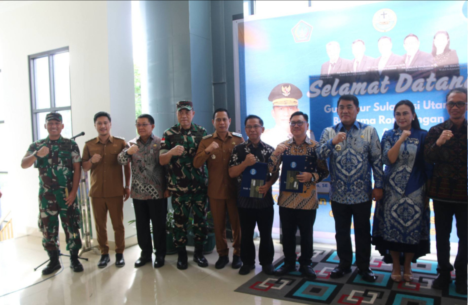 Turut hadir dalam rombongan di antaranya Danrem 131/Santiago Brigjen TNI Martin Susilo Martopo Turnip, S.H., M.H, Wakapolda Sulut Brigjen Pol Awi Setoyono, S.I.K., M.Hum, Kapoksahli Dankoarmadaeral VIII Manado Kolonel Mar Ali Sumbogo, S.E., M.M, serta sejumlah pejabat Pemerintah Provinsi Sulawesi Utara.
