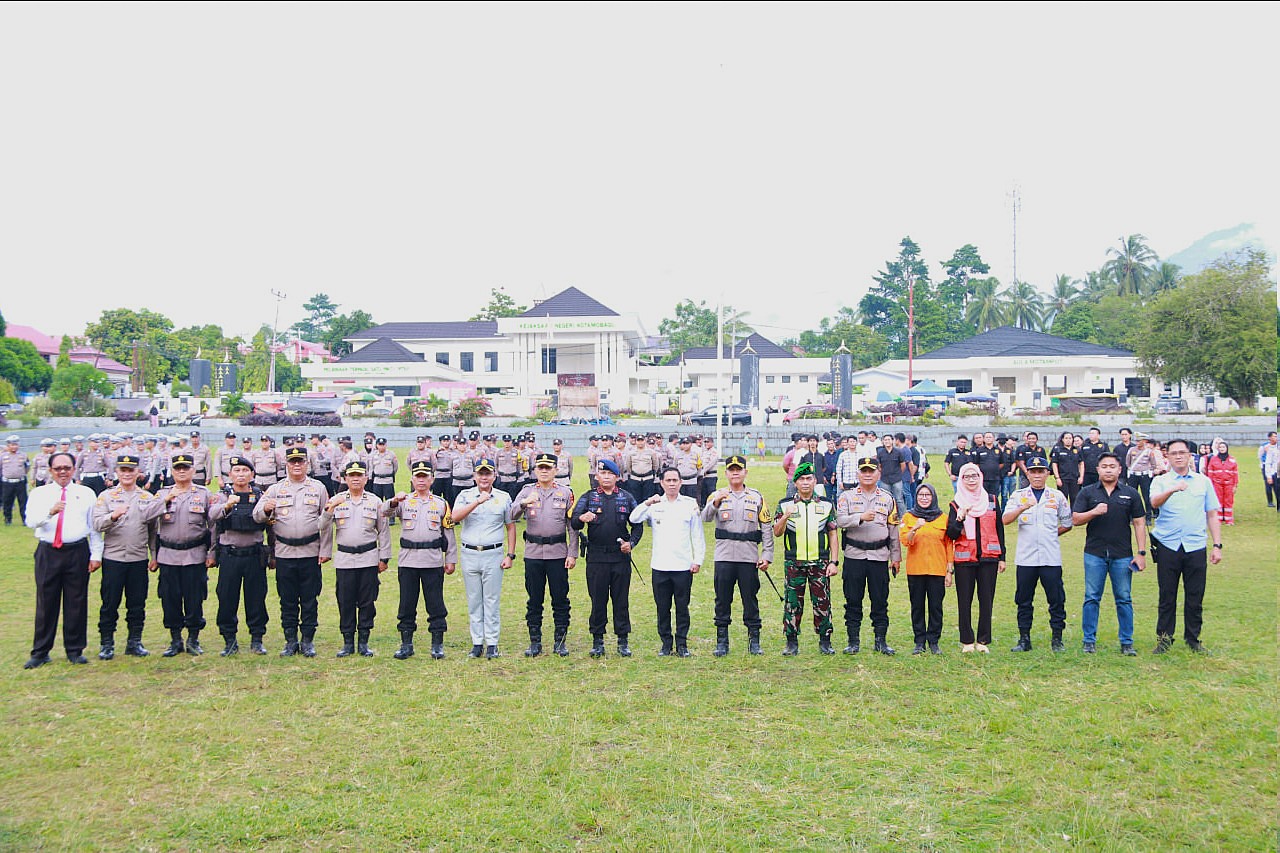 Ratusan personel gabungan turut ambil bagian dalam apel tersebut, terdiri dari unsur TNI Kodim 1303/Bolmong, Polres Kotamobagu, Brimob Inuai, Subdenpom, Satpol PP, Dinas Perhubungan, Damkar, BPBD, serta elemen pendukung lainnya. Seluruh pasukan menunjukkan kesiapan baik dari segi personel maupun koordinasi lapangan.