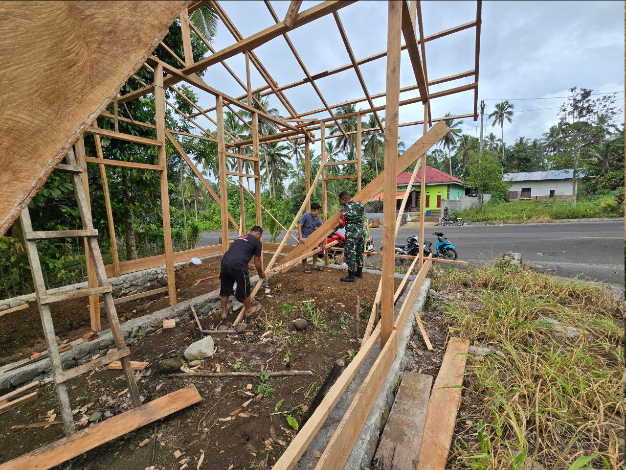 KOTAMOBAGU — Wujud nyata kemanunggalan TNI dengan rakyat kembali ditunjukkan oleh Babinsa Desa Sia, Kecamatan Kotamobagu Utara. Bintara Pembina Desa atau Babinsa Koramil 1303-02/Passi Praka Yosef K. Opun melaksanakan kegiatan bakti sosial dengan membantu proses pembuatan rumah milik salah satu warga binaannya, Bapak Refla Podomi, Sabtu (03/01/2026).