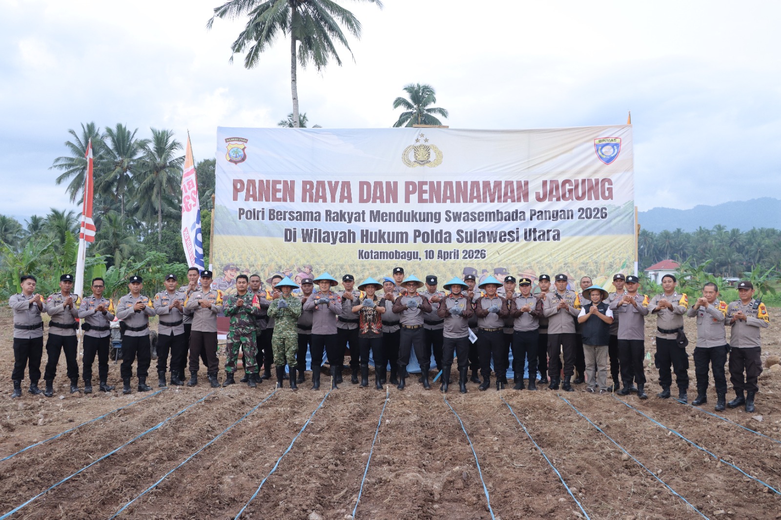 KOTAMOBAGU – TNI melalui Kodim 1303/Bolaang Mongondow menunjukkan komitmennya dalam mendukung program swasembada pangan nasional dengan menghadiri kegiatan panen raya dan penanaman jagung yang digelar Polri bersama masyarakat di Perkebunan Mokoit Kelurahan Motoboi Kecil Kota Kotamobagu, Jumat (10/04/2026) kemarin.