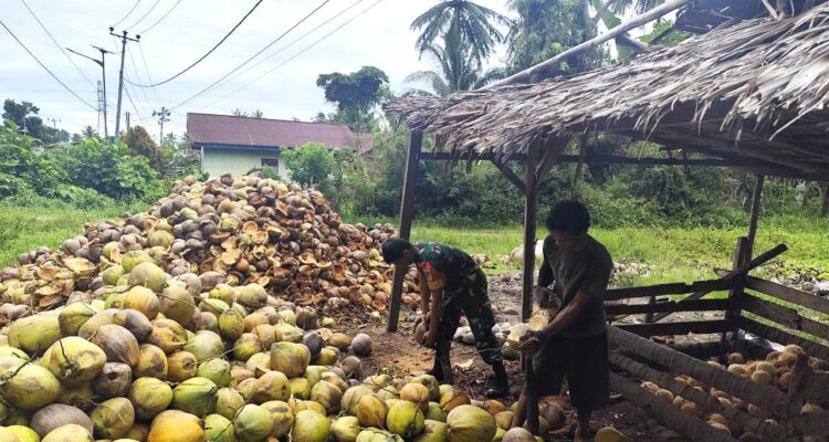 Sertu Daniel Bantu Petani Desa Serasi Jemur Jagung