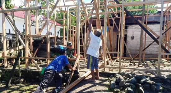 Perkuat Kemanunggalan TNI, Sertu Muhadan Bantu Warga Binaan Pasang Rangka Atap Rumah